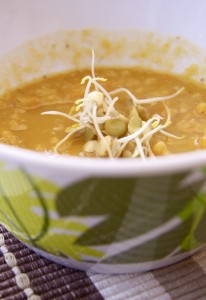 Objevila jsem další báječnou kombinaci červená čočka – růžičková kapusta. Nejdříve tu byla jen chuť na čočku a kaši, ale co k ní. Na bílkovinu ani čerstvou zeleninu chuť nebyla. A tak jsem pustila mozkovou kombinatoriku na plné brátky a vznikl z toho pokrm hoden publikování. Možná se vám bude zdát název překombinovaný, ale až ochutnáte všechny ty dobroty dohromady, pochopíte, že se nedal zkrátit.